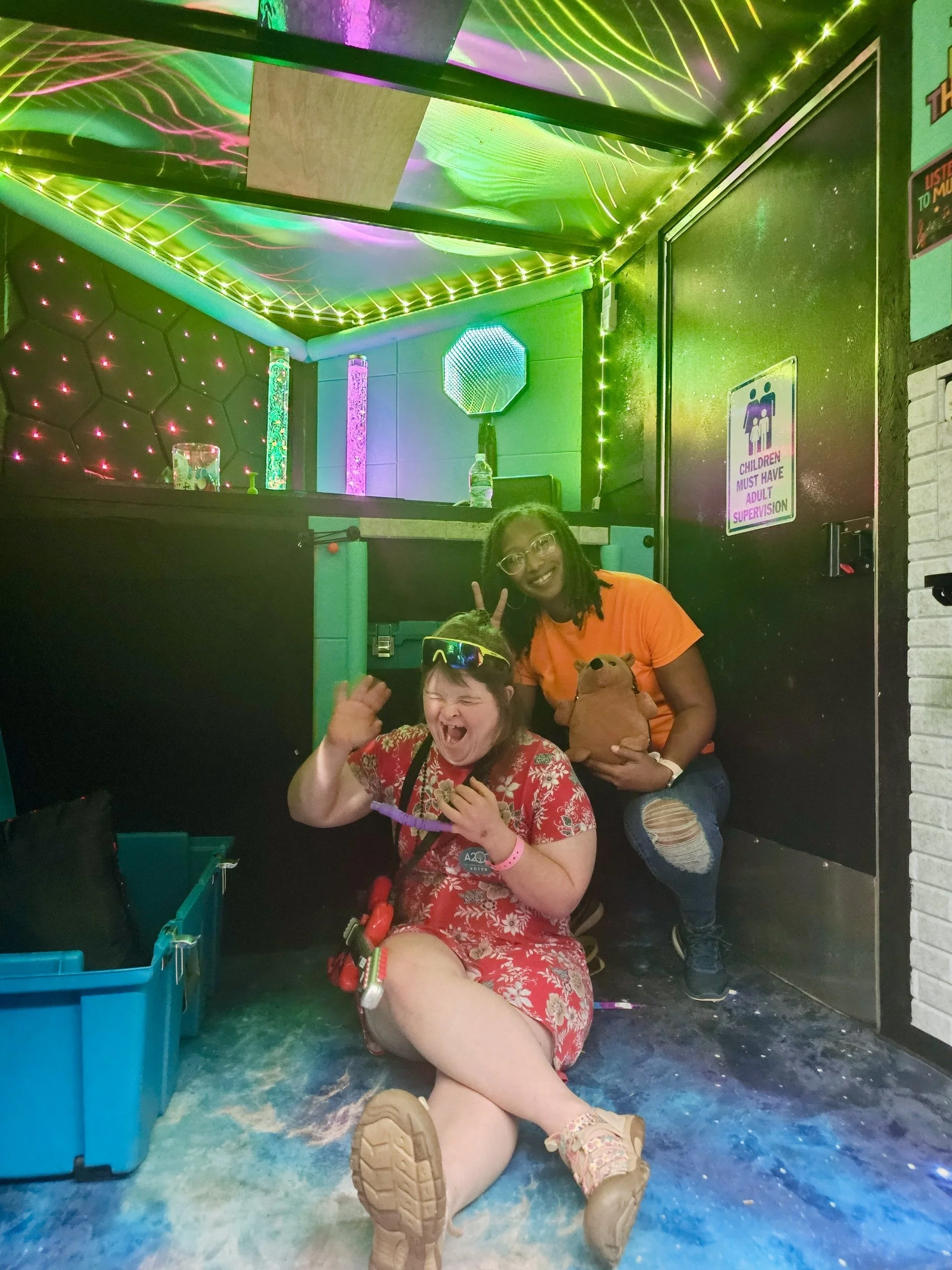 A fully immersive sensory-friendly environment designed to provide a safe space for respite, nervous system regulation, and reset - allowing individuals to regroup and return to community events with confidence.